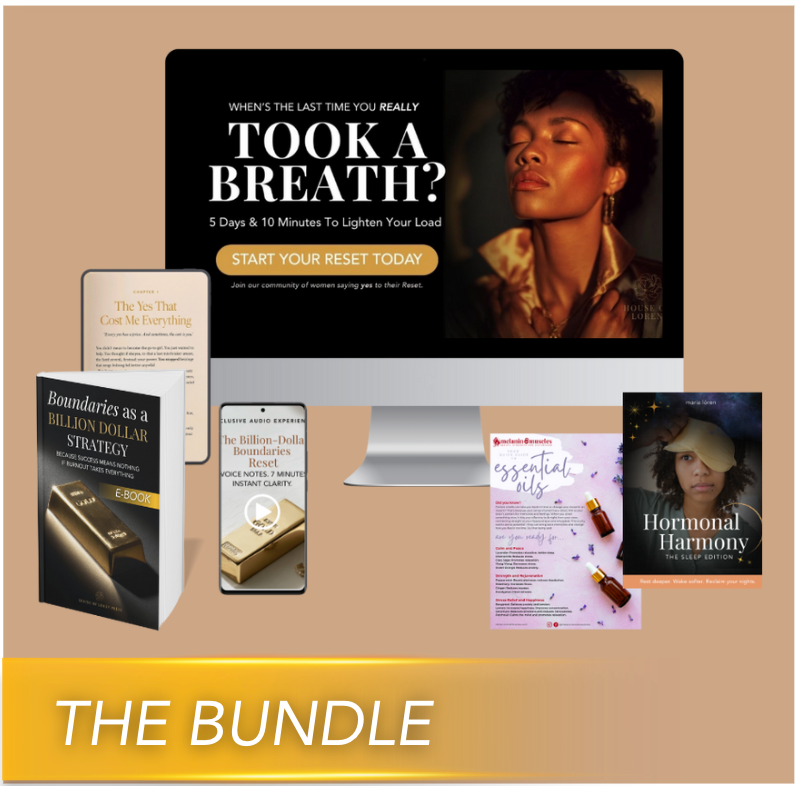 The Billion-Dollar Boundaries Bundle is your calm reset — a blend of strategy, softness, and self-respect. Inside, you’ll find the transformative Boundaries as a Billion-Dollar Strategy eBook, three guided voice-led sessions (a free companion gift to help you start), and exclusive access to the 5- Day Overwhelm Reset Voice led Program.